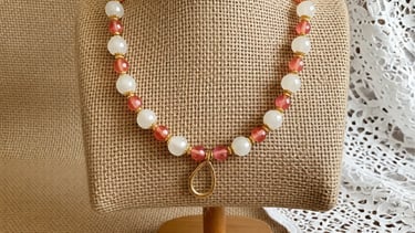 This beautiful necklace features glass and crystal elements that sparkle with various colors, reflecting the artisan's commitment to quality. The gold details add luxury, making it a perfect accessory for any occasion.