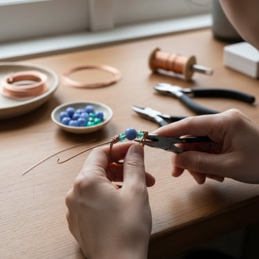 Bold copper jewelry born from late-night mother-daughter creativity, where ideas flowed freely and laughter punctuated the air, resulting in unique pieces that tell a story of love and artistry.
